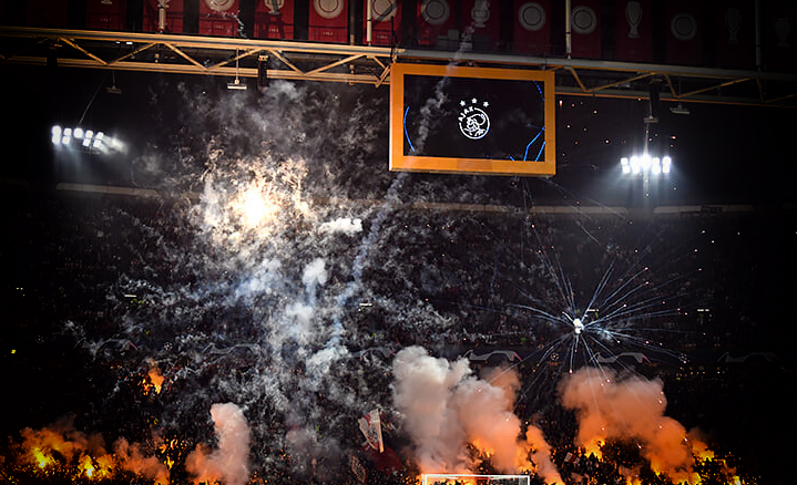 Фанаты "Аякса" и "Борруссии" устроили грандиозный фейерверк на трибнунах
