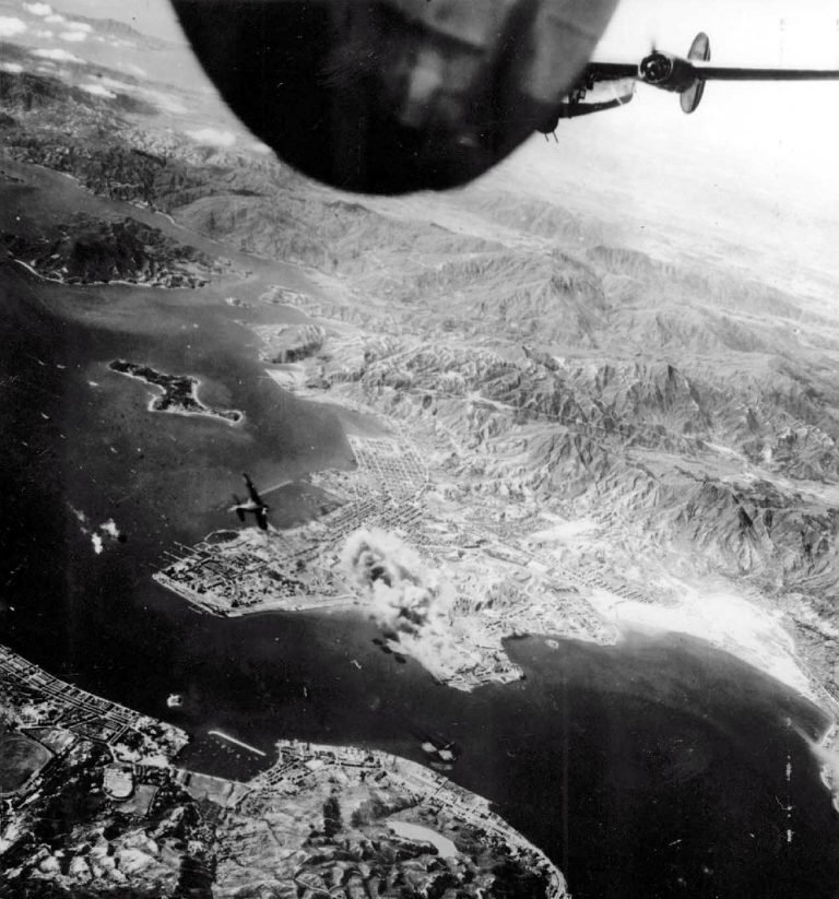 The B-24 Liberator bombers bombarded the ship docks of the Japanese-occupied Hong Kong.