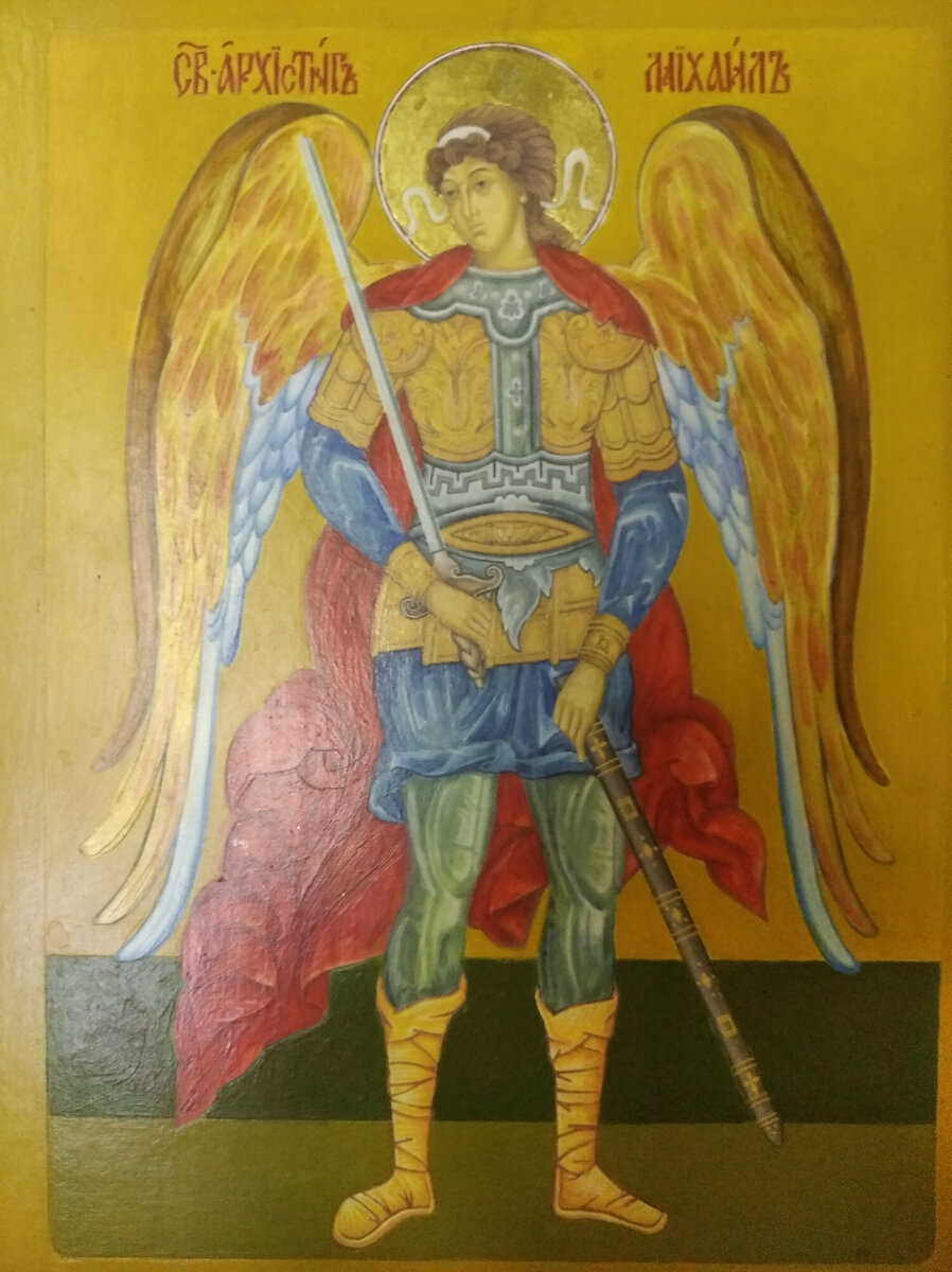 Архангел Михаил - военачальник, вождь Небесного воинства, поставленный Богом, как верный его служитель, Архангел Михаил, обладающий великой душевной силой, во время падения и отступления денницы собрал всех оставшихся верным Богу Ангелов и велегласно воскликнул: "Вонмем(будем внимательны)! Встанем добре пред Творцом и не будем думать о том, что противно Богу нашему!" Михаил и Ангели его брань сотвориша со змием брася и ангели его, и не возмогоша, и места не обретеся им ктомуна небеси (Откровения 12.7-8) Архангел Рафаил сопровождал под именем Азарии Товио во время путешествия его в Раги Мидийские к родственнику его Гаваилу и оказал много милостей этому семейству. Имеет дар исцелений.