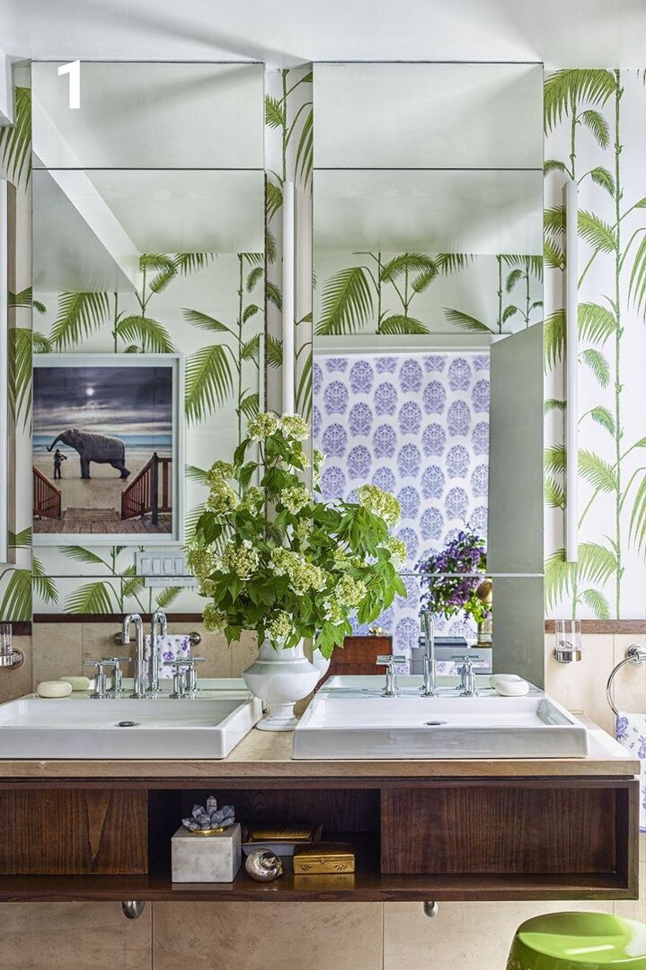 В квартире Сохо, спроектированной Sasha Bikoff, в дамской комнате стоят бирюзовые обои с бабочками от Christian Lacroix. 5-Сочетаем с деревом
