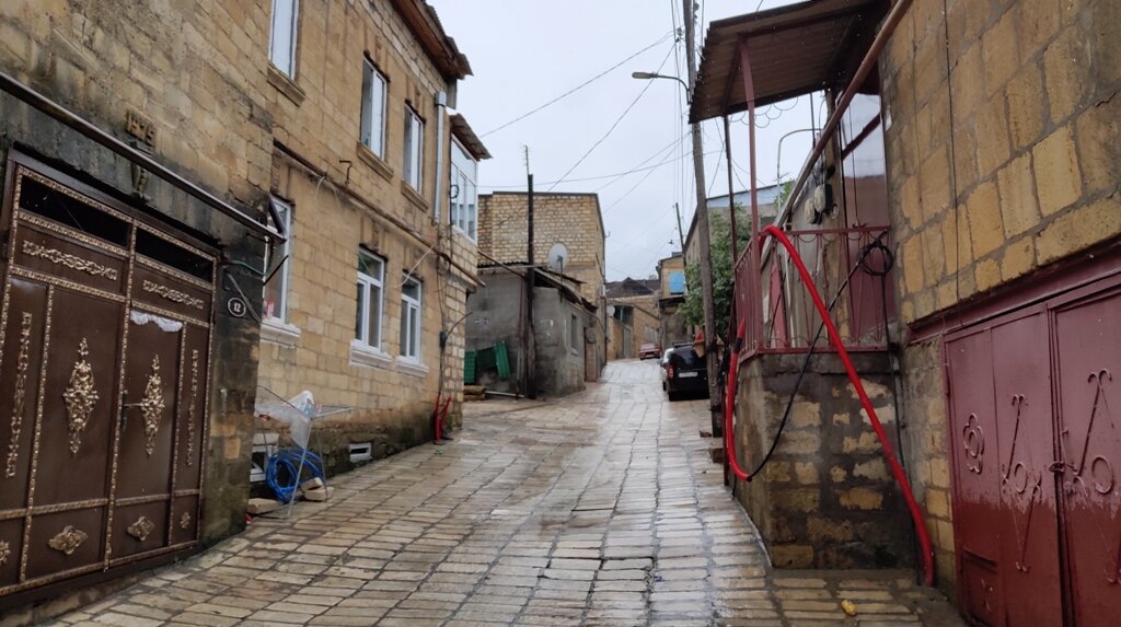Я уже писала о том, что, оказывается, Дербент переводится, как каспийские, морские или железные ворота, а у арабов так вообще «Ворота ворот». Так вот именно на ворота Дербента я в первую очередь и обратила внимание. Но не на старинные ворота в крепостной стене, а на ворота и двери жителей в обычных домах. И вот какая петрушка: дом может быть самым обычным, даже бедненьким, корявым, из серого безликого кирпича, но ворота! Это же лицо дома! Они обязательно должны быть с украшениями, лучше «золотыми», или ярко покрашенные. В общем, дорого-богато) Кстати, потом в некоторых деревнях видела вообще вариант ворот без забора – просто так оформляется вход на участок и тоже с золотыми украшениями) Вот еще пример оформления входа: тротуары здесь «полосатые»: то новый – перед входом в богатенький дом, то старый, весь в ямах – перед «обычными» домами, так что под ноги глядеть надо обязательно. Я, уткнувшись в телефон и пытаясь сориентироваться, пару раз так попадала в глубокую яму-лужу) И еще неско