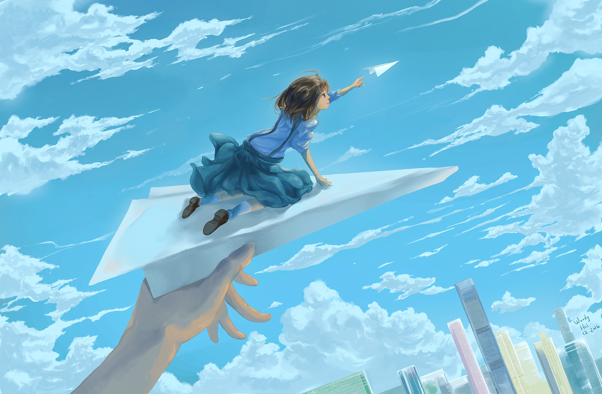 Самолёты она с детства любила. Делала бумажные самолётики, загадывала им желания и запускала в небо. Самолёт пролетал метра три и плавно приземлялся на траву. Детские желания не сбывались, а самолёты всё приземлялись и приземлялись.