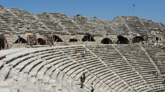 1. В турецком городе Сида, расположенного возле Анталии, находится один из древних амфитеатров, рассчитанный на пятнадцать тысяч человек. Он был основан в седьмом веке до нашей эры греческими колонистами. 2. Борса — один из самых древних городов нашего мира. Первые упоминания о нём относятся к XIV веку до нашего века. Здесь также можно увидеть остатки огромного амфитеатра. Несколько веков назад одновременно здесь могли наслаждаться представлением пятнадцать тысяч зрителей. 3. Общегреческие Пифийские игры и многочисленные греческие мифы тесно связаны с древним городом Дельфы, расположенным на территории этой страны. Поэтому совсем неудивительно, что здесь тоже был амфитеатр. Сейчас он находится в весьма плачевном состоянии, но ранее в нём собирались для просмотра представлений не менее пяти тысяч человек. 4. Аманн, столица Иордания, ранее носил название Филадельфия. Во времена правления Антонина Пия здесь был отстроен амфитеатр, рассчитанный на шесть тысяч зрителей. 5. Постройка амфитеа