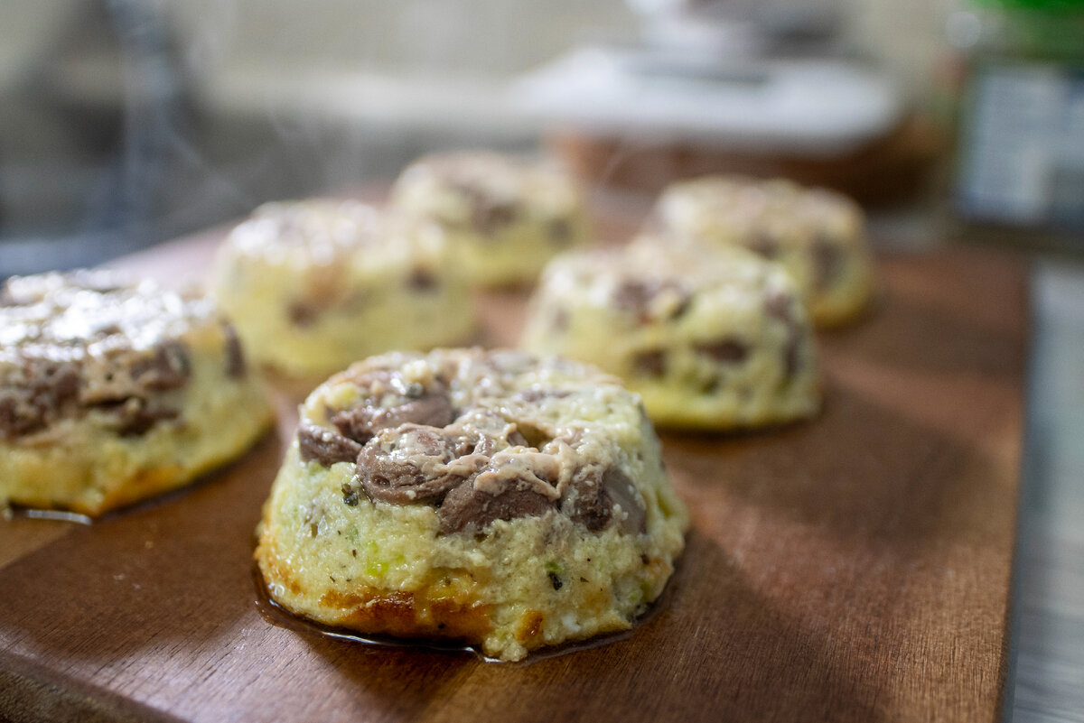 Берем один кабачок, очищаем его от кожицы, нарезаем кубиком и измельчаем в кухонном комбайне (блендере или на мелкой терке), добавляем 2 яйца, 100 мл сливок, соль, перец по вкусу, базилик, 1 ст. л. кукурузного крахмала, все тщательно перемешиваем до однородности. Куриные сердечки, примерно 300 г разрезаем на ломтики и слегка обжариваем на сливочном масле с мелко нарезанным репчатым луком, солим и перчим по вкусу. Формочки смазываем сливочным маслом, выкладываем слой сердечек с луком в каждую и заливаем яично-кабачковой смесью. Ставим запекаться в духовку на 15-20 минут при 180 градусах. Соус решила сделать из белого йогурта, половины головки лука, приправы Карри и зелени. Вот такой оригинальный сегодня у нас ужин! Приятного аппетита! Готовьте с удовольствием, подписывайтесь на мой канал, ставьте лайк! #куриные сердечки рецепт #как приготовить куриные сердечки #блюда из кабачков #суфле из кабачков #соус из йогурта #куриные сердечки #простые рецепты