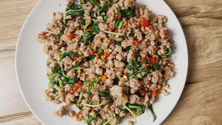 Время готовки: 25мин. Порции: 2 ผัดกะเพราหมู | Пад Бай Крапао Му (или просто Крапао Му) можно встретить практически в каждом кафе. Подается с рисом с яйцом, положенным на рис, с колечками огурчиков. Так же на столах находятся различные соусы. Остроту можно регулировать количеством перца, которое добавляется при готовке. Подготовка ингредиентов, чем заменить и как резать Подробнее об ингредиентах Ингредиенты | пошаговое приготовление Ингредиенты Шаги Подготавливаем ингредиенты: