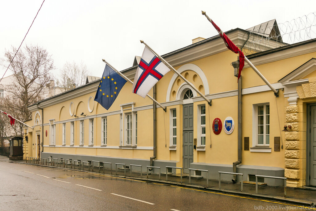 За свою долгую блогерскую жизнь я бывал во многих местах, где не ступала нога обычного человека. Бывали мы и в посольствах иностранных и едАли заморскую икру, запивая шампанским. Вспомнил визит в посольство Дании в Москве. Это прекрасный особняк Морозовой, в самом центре Москвы. Фотография королевской четы на окне, с автографами Зала... В посольстве уютный дворик. а со стороны даже не догадаешься, что внутри такой сад Посол Дании Томас Винклер представляет Генерального директора Bang & Olufsen, Tue Mantoni (ради этого я тогда там и был) А Ханс Христиан взирал на нас из угла особняка. И никто не вспоминал ни о каких санкциях. Бизнесмены не идиоты, они хотят работать и зарабатывать в России.
