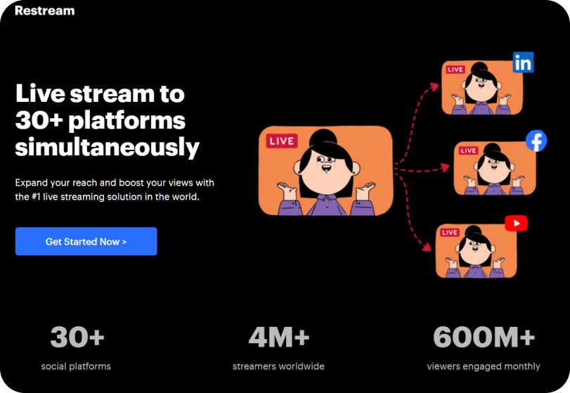 онлайн-трансляции. Что такое restream.io Restream.io — облачный сервис для проведения трансляций и вебинаров одновременно на нескольких платформах. Сервис запустили два предпринимателя из Киева в 2015 году. Спустя шесть лет с помощью restream проводят 8 миллионов трансляций ежемесячно, а количество зрителей превысило отметку в 600 миллионов человек. Возможности сервиса Мультистриминг