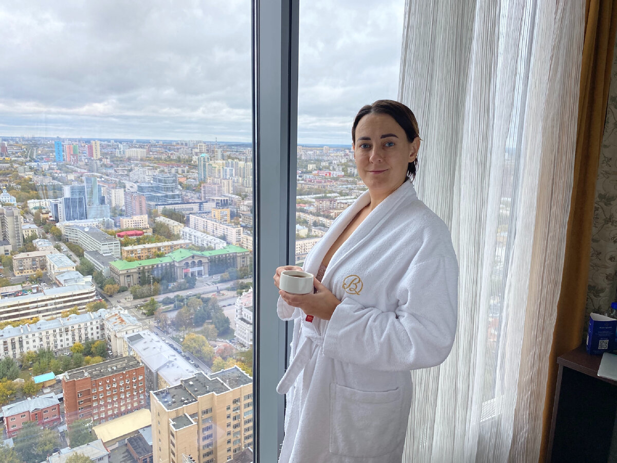 Всем привет! Продолжаю рассказывать об отелях и гостиницах, которые я посещала лично. Многие думают, что я только в Краснодарском крае бываю :-) Но это не так. Сегодня расскажу об отеле "Высоцкий" в Екатеринбурге. Очень хорошая пятёрка в центре города. Оказались мы здесь не случайно... В сентябре у нас с мужем была годовщина - 17 лет со дня свадьбы. Решили немного отдохнуть, развеяться. Но так как у мужа на работе практически нет выходных, то удалось выбраться только в Екатеринбург. И то, всего на 3 дня. Я забронировала "Высоцкий", очень давно хотела побывать в этом отеле. Ну нравятся мне панорамные окна... А вид отсюда действительно чудесный. Выбрали апартаменты, чтобы можно было вечерком чай спокойно попить, не выходя из номера. За 2 ночевки с завтраками заплатили 15 тысяч рублей. Плюс еще брали депозит 2000 рублей, который вернули при выселении из номера. Номер достаточно большой. Есть небольшая кухня с варочной панелью, вытяжкой, микроволновкой, чайником. Необходимый набор посуды