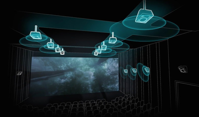 Поэтому ребята из Dolby подумали… А что если вместо того, чтобы заранее мастерить звук под разные конфигурации, мы сделаем формат звука, который будет масштабироваться и правильно звучать как на 64 колонках, так и на двух. Именно так появился объектно-ориентированный звук, также известный как Dolby Atmos. И это совершенно новый способ создания объемного звука.