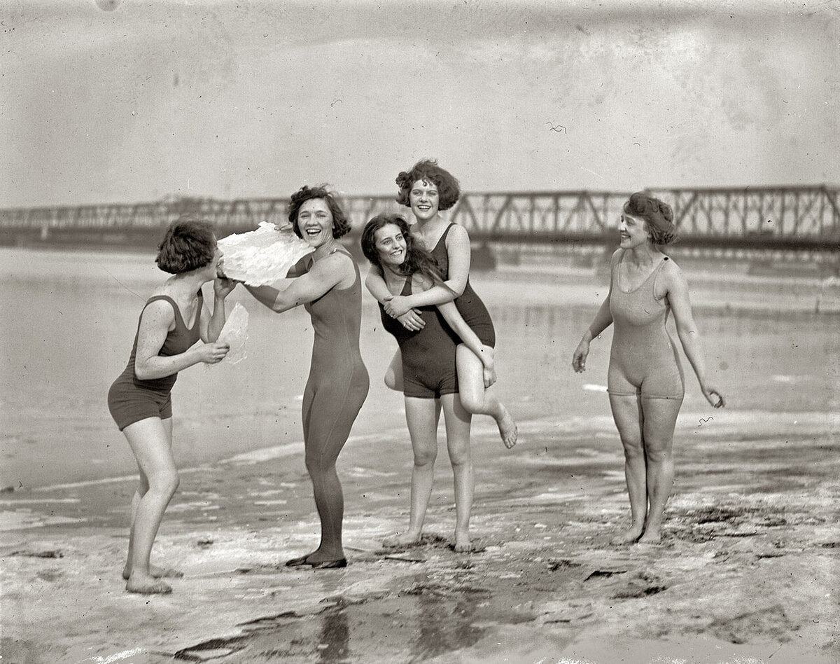 Очередная зарисовка пляжной жизни начала века. Здорово, что такие фотографии сохранились. И да, я не припомню, что бы мне попадалось нечто подобное из наших краев. Хотя без сомнений и в Советском Союзе народ тоже умел отдыхать. Но не факт, что в таком виде ходили на пляжи. Тогда были ещё слишком сильны дореволюционные предрассудки.