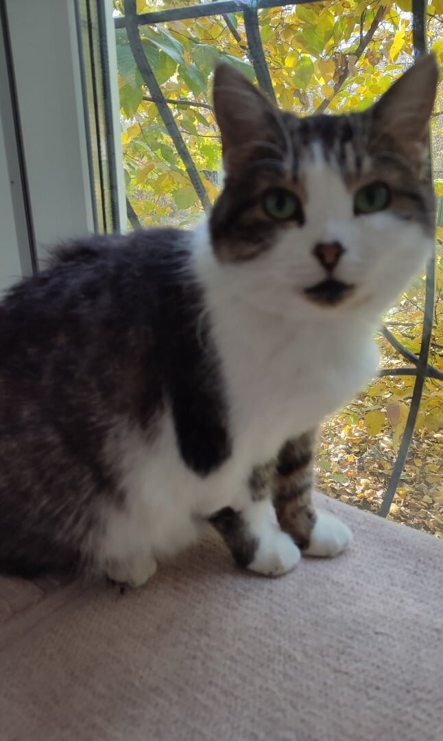 Мусенька с изумрудными глазами, в них сложно не влюбиться...) Стерилизована, лоточек знает на отлично, к когтедралке приучена. Обработана. И это все благодаря нашей милой Екатерине Милановой.