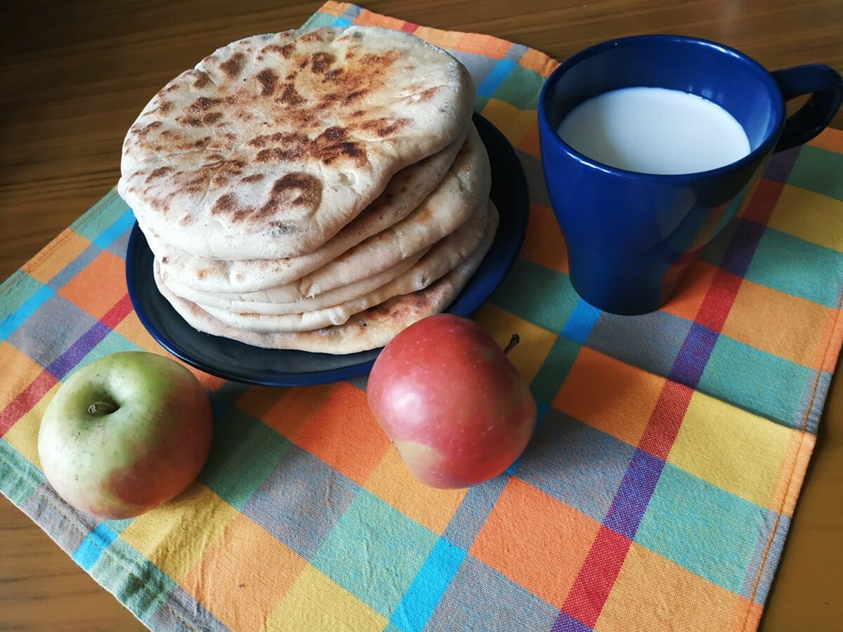 Прошка старательно раскатывал лепёшки, а Алёнка жарила их на сковородке.