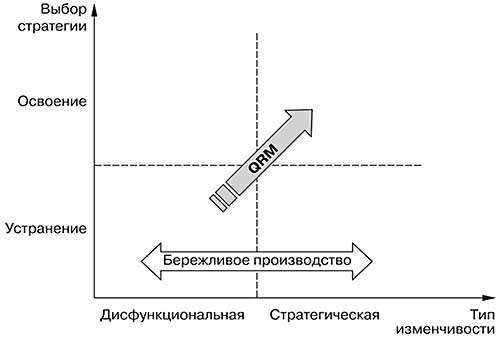 Концепцию быстрореагирующего производства (quick response manufacturing, QRM) предложил Раджан Сури (1998). QRM означает реагирование на запросы потребителей так, чтобы быстро разрабатывать и выпускать продукты, учитывающие эти запросы. В этой концепции повышенное внимание уделяется постоянному сокращению времени, требующегося для выполнения в компании всех видов деятельности, обеспечивая при этом повышение качества, снижение затрат и более быстрое реагирование на изменение ситуации. Когда следует применять модель Корни концепции QRM уходят в стратегию «конкуренция, основанная на времени» (time-based competition, TBC), которую предложи ли Джордж Сток и Томас Хаут (1990). Модель TBC строилась на использовании скорости для получения конкурентного преимущества: компания, прибегающая к такой стратегии, предоставляет товары или услуги потребителям быстрее конкурентов. Стратегию TBC можно применить в любом виде бизнеса, в том числе банковском, страховом или в медицине. QRM является разновидн