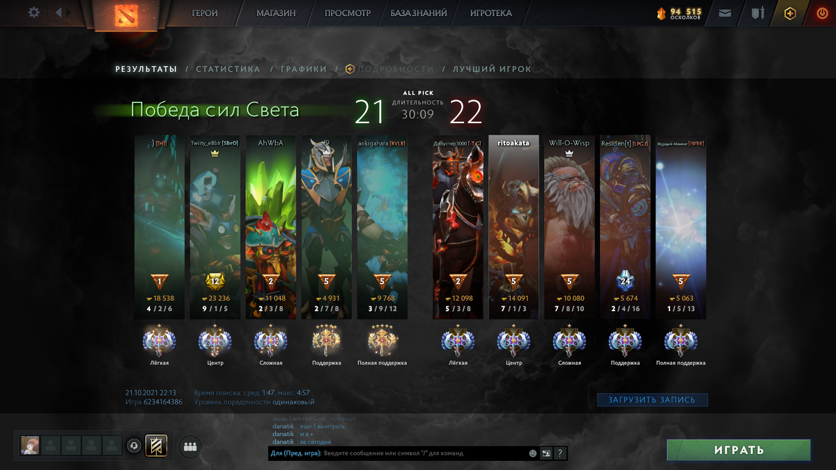 Искренне не понимаю, что случилось, потому что месяц назад, в момент написания книги,все было хорошо. Сейчас же, проиграв 500 ммр за последний месяц, я не понимаю, что случилось с игрой. Точнее, понимаю, что я плохо играю, скорее всего. Но то, что мне в команду кидает людей, которые не способны на коммуникацию, и произошло это около месяца назад - это факт. Все это время я потел, но теперь понимаю, что с такой игрой проще не играть совсем - от моего романтизма, с которым я писал книгу, не осталось вообще ничего. 3740 - это тильт, и по всей видимости, нужен отдых. Потому что сейчас это просто невыносимо - вот вам нотариально-заверенные скриншоты: Жалко, что так происходит, но из этого вырисовывается несколько вещей: 1. Нужно пересмотреть свой геймплан; 2. Не нужно играть соло; 3. Если так пойдет дальше, то продолжать играть бессмысленно. Понимаю, я не первый, но лично у меня игра стала вызывать отрицательные эмоции. Поэтому, скорее всего, это может стать закатом моей карьеры, как улучш
