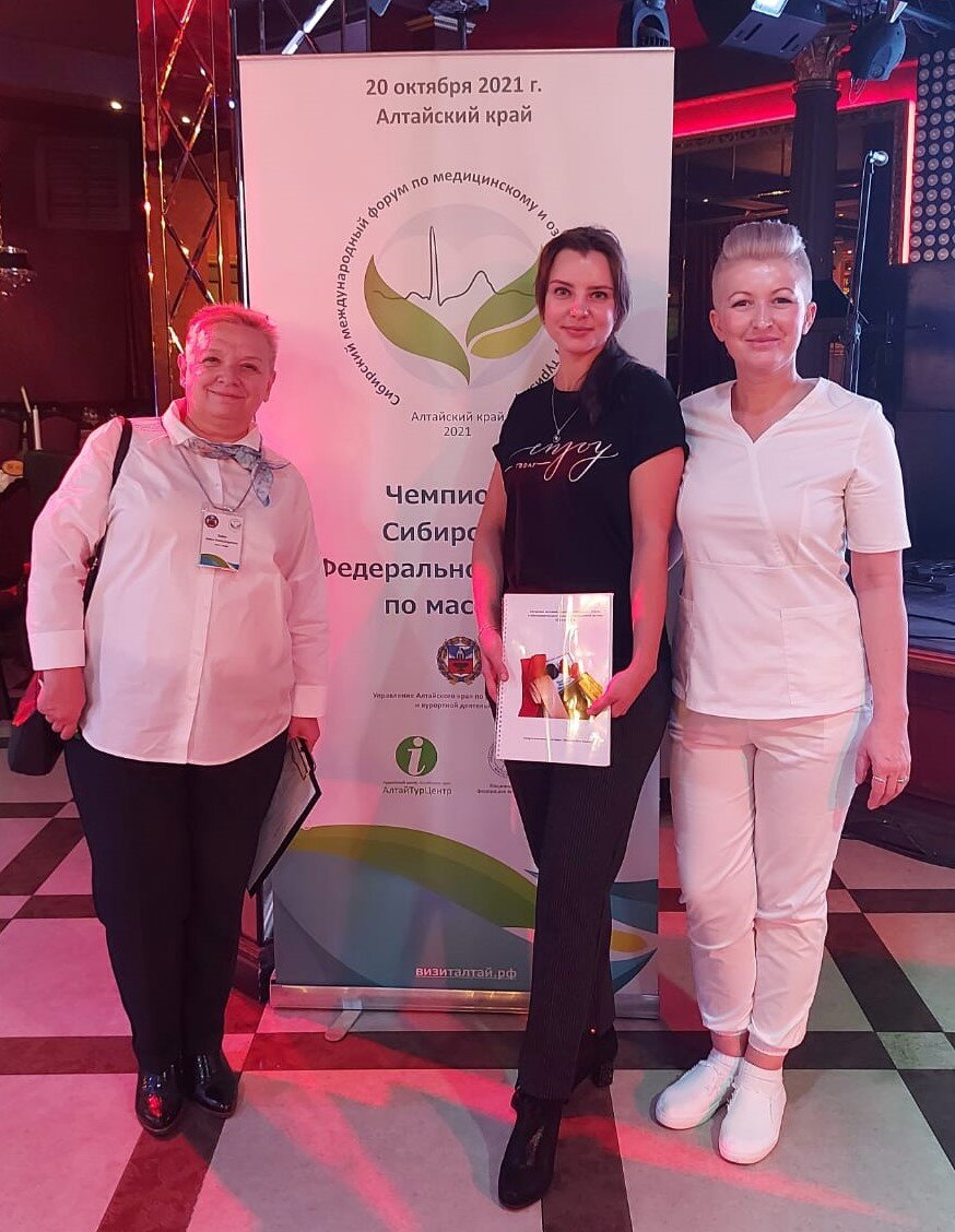 19-20 октября 2021 года в Барнауле состоялся VII чемпионат Сибирского федерального округа по массажу. . Программа чемпионата включала две программы: обязательную - классический массаж и произвольную - медицинский массаж, спа-программы и др.. . В соревнованиях приняли участие 24 участника из разных городов и регионов России (Барнаул, Белокуриха, Новокузнецк, Республика Алтай, Новосибирская область, Московская область и другие). . Алтайский край и Алтайский государственный медицинский университет представляла кафедры медицинской реабилитологии с курсом ДПО. . В частности, в работе судейской коллегии приняли участие доцент кафедры Бойко Е.А. и куратор цикла "Медицинский массаж" ассистент кафедры Мышкина Е.В. . Стоит отметить высокую конкуренцию среди участников чемпионата. Но несмотря на сильных соперников Шишкина Н.В., представляющая массажную школу Алтайского государственного медицинского университета, стала не только лидером в номинации "Медицинский Массаж", но и была призна