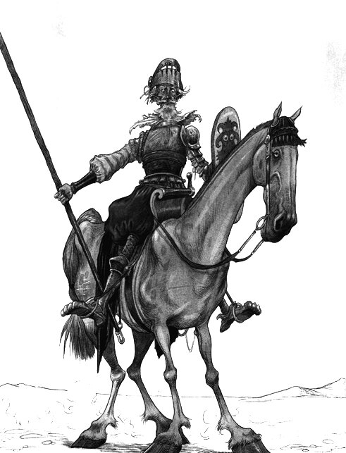 Прочь неясные сны Дон Кихота, Ты за ними стоишь словно тень в тишине, В бело-серой обугленной мгле. Там нет звуков шуршанья одежды, Там не спрячешься в шорохе шумного вздоха. Промелькнёт по мохнатым обоям пламя ветра. Далеко, где узнать ничего невозможно, силуэт, Силуэт разнимает на части чужие слова. Наступая на руки, простёртые в память, Сделав шаг, упираясь в ладони гранёной подошвой. Разрывая железную ржавую ткань, Я ломаю в осколки, кости клетки хрустят, Где держали меня сотни тысяч мгновений. Сотни лет прижимали на панцирный стол Мой пропитанный криком поцарапанный стон. Я не прятал сознанье за толстыми стенами, За толстыми стенами толстых оков. Из неясных лучей, пожирающих ветер огней Миллиметр вплетал в миллиметр Поднимался, чтобы снова упасть и подняться Делал шаг и молчал, не умея молчать. Из неясных и лживых речей, из чужих обещаний, Уговоров и лестных эпитетов слов Сделал пропасть, в которую трудно упасть. Сделал мост через руки гранёных ладоней. Шаг за шагом я себя отрывал