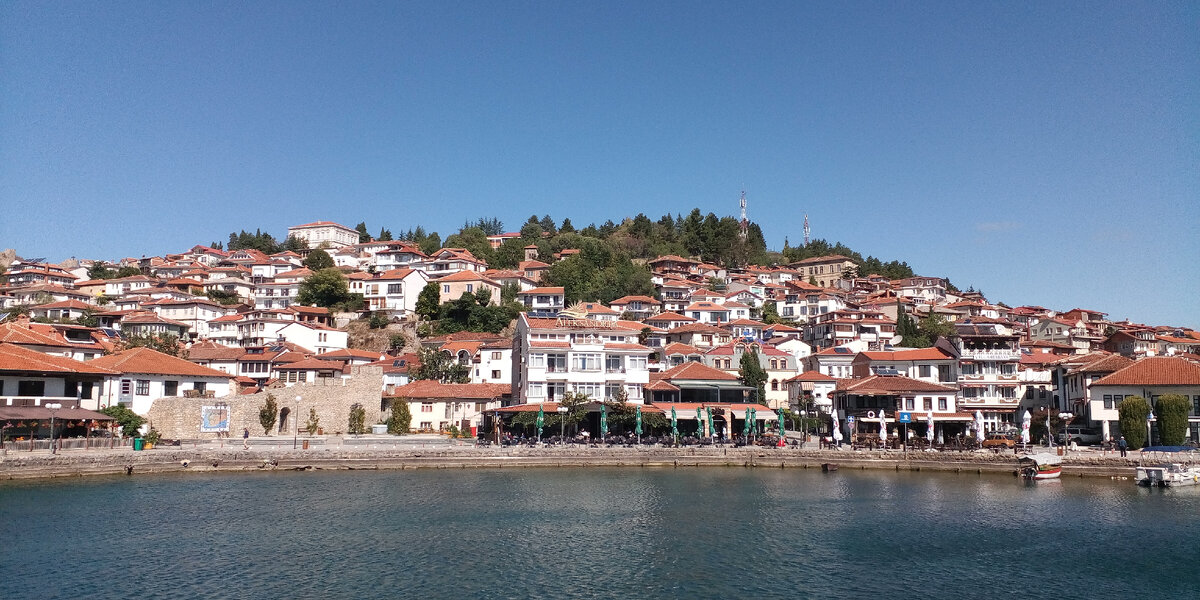 Ну что, вот и настало время поведать о финальном дне в Охриде. Прошел почти месяц с тех пор, как я вернулся из Северной Македонии и почти три недели, как я начал писать свои очерки об этом путешествии. Сначала было страшно даже подступиться к фотографиям - их слишком много. Но, как говорится : " Глаза боятся, а руки делают" . В общем, встречайте! Очередная порция фото солнечного Охрида здесь и сейчас! Первым делом нужно было купить билет на автобус до македонской столицы, ведь именно оттуда был вылет в Россию. По традиции билет я решил приобрести заранее. Так он выглядит. По стилю отличается от того, что был в Скопье. Цена все те же 680 денар - 650 за сам билет и 30 за услуги трансагентства. А это одна из улиц неподалеку от моих апартаментов. Жил я в паре километров от центра, поэтому вид был не на черепичные крыши старого города, а на пустырь с горами вдалеке. Похожее было и в Черногории :D Одна из улиц, ведущая к набережной. В этот раз решил сразу выйти к воде. Хотя погода и