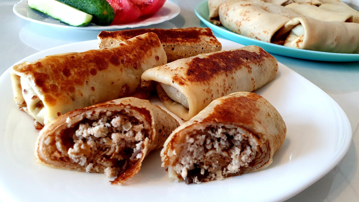Блинчики фаршированные мясом и грибами. Секрет сочной начинки в одном ингредиенте!!! Всем привет, добро пожаловать на мой канал! Хочу поделиться с вами одним секретом сочной начинки в блинчиках. Раньше когда я делала фаршированные блинчики, начинка всегда была какой-то суховатой. И когда свекровь угощала блинчиками, начинка была такой сочной и я не понимала как она это делает😀🤷♀️ И вот свекровь поделилась со мной этим секретом, а я делюсь с вами😉 Итак, начнем!!! Сперва надо отварить кусок мяса, любого - свинина или курица или индейка, какое вам нравится. Отварить в подсоленной воде с лавровым листом и горошинами душистого перца. Затем надо испечь блинчики по вашему любимому рецепту. Я пеку такие: Ингредиенты: Вот еще рецепты вкусных блинчиков: https://youtu.be/DKsEdG-f2To, https://youtu.be/Bz3P1Jgi5_8, Приготовление: В миску налить молоко, добавить яйца Добавить сахар, соль Перемешать, добавить муку и растительное масло Хорошо перемешать, тесто должно быть не густое и не жидко