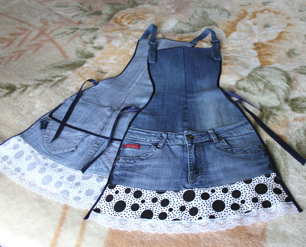 Двухсторонний хозяйственный фартук-сарафан. Переделка из старых джинсов