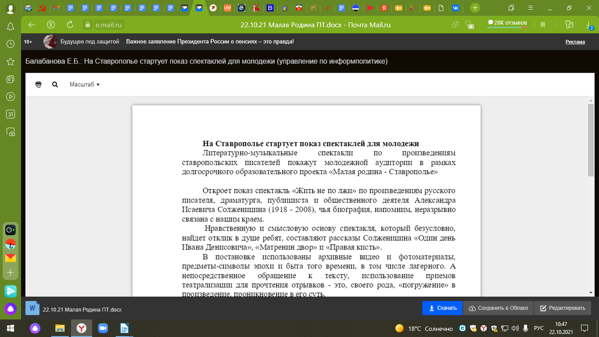 Вот что пришло автору канала по его ежедневной работе из рассылки правительства Ставропольского края несколько минут назад.