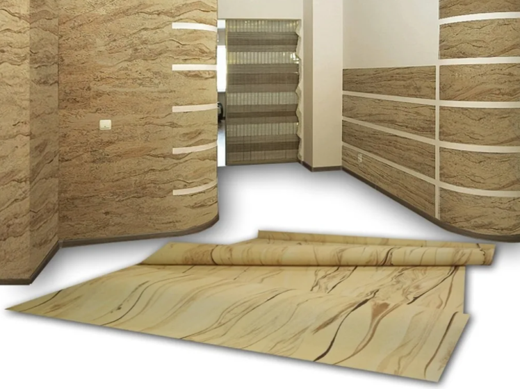 Помимо вышеперечисленных материалов для поверхностей стен, можно использовать специальную пленку. Сегодня рабочие на заводах изготавливают пленки из полимерных материалов. Основной полимер в строительном производстве — это поливинилхлорид. Так же, в состав пленки входит пигментные и другие необходимые смеси.