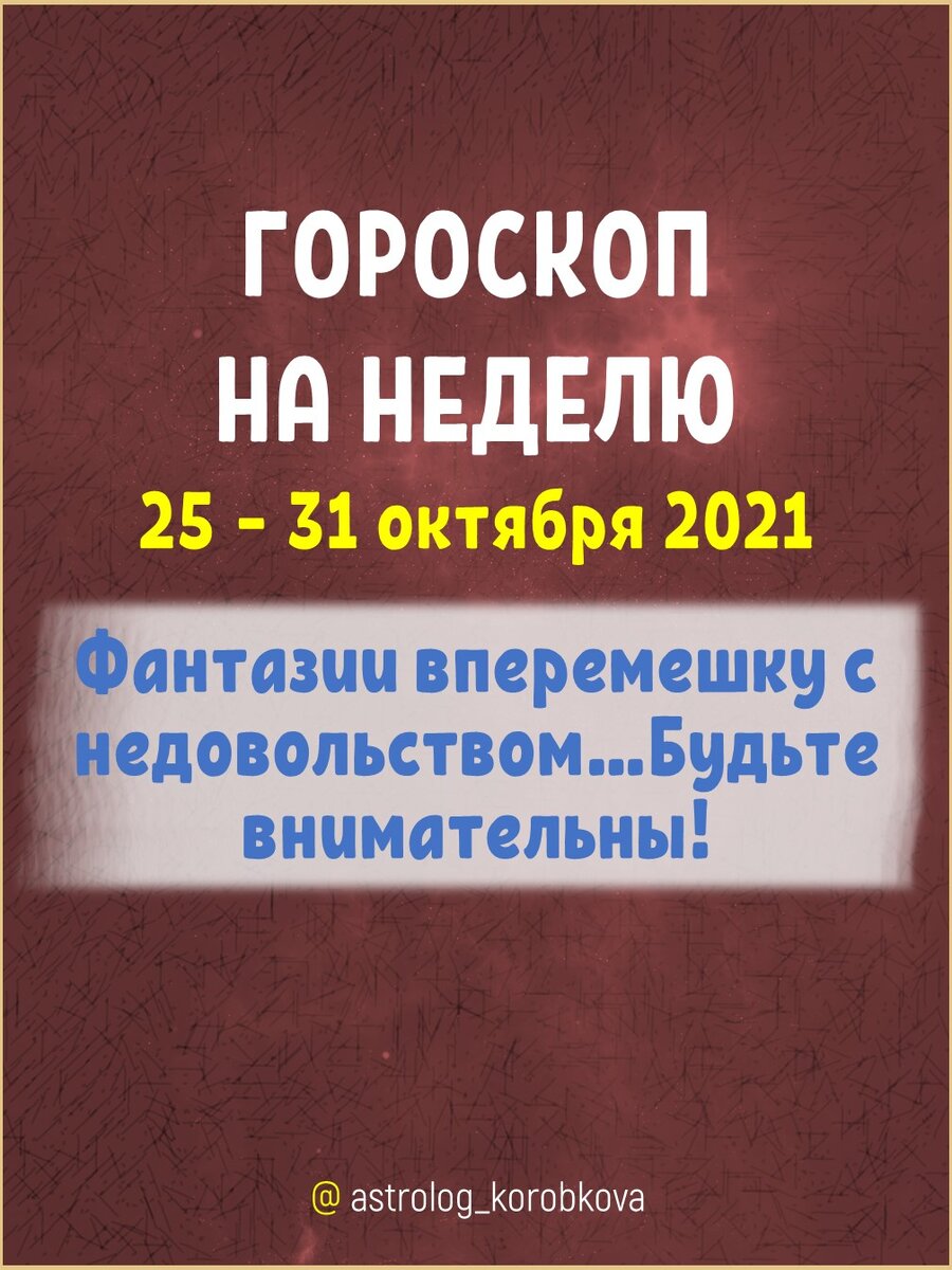 Друзья, приветствую! Разберем главные аспекты недели. Ставьте лайки, так вы всегда будете в курсе астро-новостей от меня! Напоминаю, что это только общий гороскоп. Для заказа личного пишите в direct. Приступим: ✔ Солнце с 23 октября перейдет в знак Скорпиона (до 22 ноября)! В этот период усиливаются наши амбиции, желания. Появляется смелость, решительность. Захочется показывать свою власть, продвигать идеи, заниматься крупными проектами. Причем не всегда открытым и честным способом. В это время возможны конфликты и споры. Всё из-за подозрительности, ревности и попыток тотально все контролировать. ✔Венера квадрат Нептун, с 26 по 28 октября – может дать неадекватное восприятие отношений, фантазии, преувеличения, неудовлетворенность. Возможны тайные романы, какие-то сомнительные предложения. Усилятся эмоциональность и обиды. В это время лучше не принимать серьезных решений и не совершать крупных финансовых сделок. Больше всех эту энергию почувствуют Рыбы, Стрельцы, Весы, Тельцы, Девы и