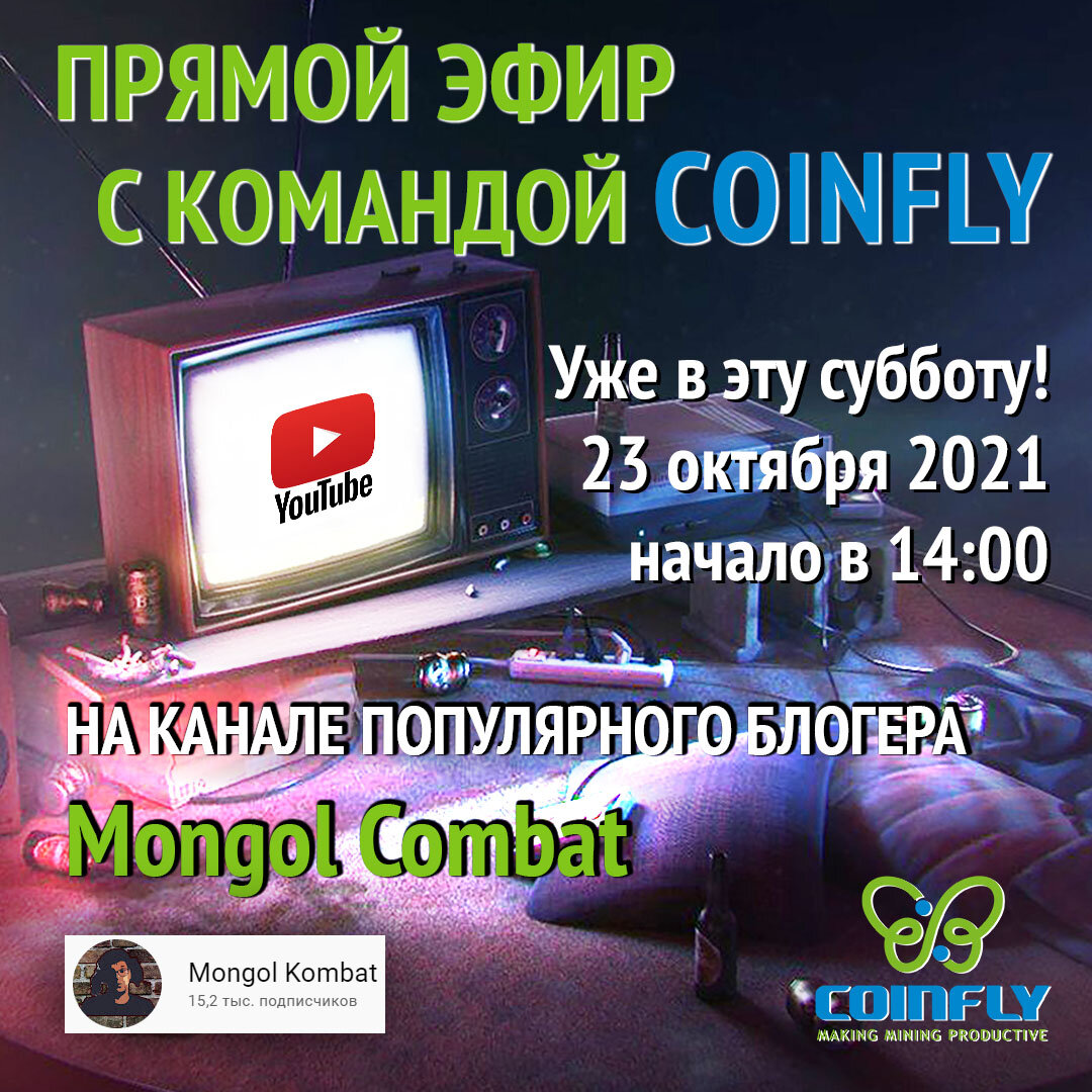 Приглашаем Вас на стрим компании COINFLY на YouTube канале популярного среди майнеров блогера Mongol Combat. Дата проведения: суббота 23.10.21 Время проведения: 14:00 (Московское время) От разработчиков платформы COINFLY будет участвовать: Павел Еременко - директор по продукту. В прямом эфире мы подробно расскажем о нашей команде, истории, перспективах развития платформы, планируемых ближайших обновлениях, ну и конечно ответим на все ваши вопросы. Разыграем классные призы за самые интересные вопросы! Ссылка для регистрации: https://www.youtube.com/watch?v=BIKPVkVbf8A Приходите! Будет интересно! Подпишитесь на наш канал, чтобы не пропустить новые публикации. Наш канал на YouTube #coinfly #cos #mining #bitcoin #ethereum #майнинг #майнингферма #etn #btc #crypto