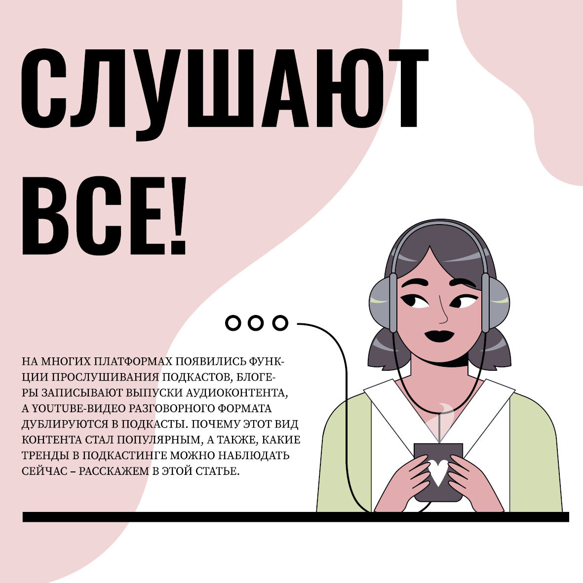 На многих платформах появились функции прослушивания подкастов, блогеры записывают выпуски аудиоконтента, а youtube-видео разговорного формата дублируются в подкасты. Почему этот вид контента стал популярным, а также, какие тренды в подкастинге можно наблюдать сейчас – расскажем в этой статье.