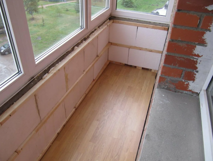Когда речь заходит о материалах для утепления балкона, что здесь имеется в виду не только сам утеплитель, но и сопутствующие материалы, которые позволяют выполнить утепление качественно и создать надежную конструкцию утепления. Перед проведением работ Вам необходимо приобрести в достаточном количестве деревянные рейки. При их покупке необходимо обращать внимание на такой параметр как толщина. Отталкиваться необходимо от толщины, которую имеют приобретенные вами плиты пенопласта.