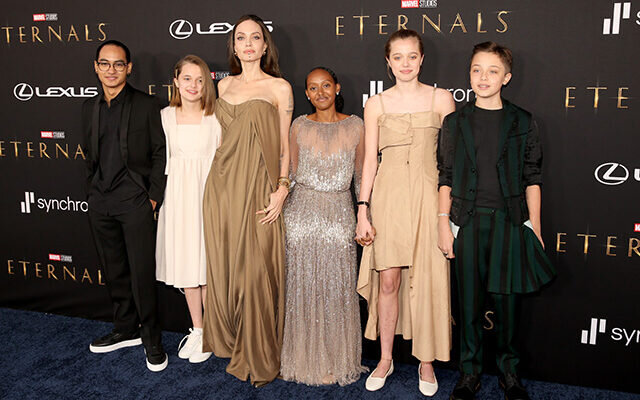 18 октября состоялась премьера фильма «Вечные» с Анджелиной Джоли в главной роли. Звезда решила посетить мероприятие вместе с детьми. Выход Джоли произвел фурор сразу по нескольким причинам. На красной ковровой дорожке Анджелина позировала почти со всеми своими детьми: 20-летним Мэддоксом, 16-летней Захарой, 15-летней Шайло, 13-летними Вивьен и Ноксом. Не было только 17-летнего Пакса. Джоли выглядела, как обычно, роскошно. На актрисе коричневое многослойное платье от Balmain с открытыми плечами. Подбородок звезды украшал золотой кафф — это отсылка к героине в «Вечных». Внимание заслуживают и дети Энджи. 15-летняя Шайло, которая все время ходила в мужских костюмах и ассоциировала себя с мальчиком, вышла в свет в платье! Поклонники Джоли оценили красоту юной девушки. На Шайло было переделанное платье матери, которое адаптировали специально для дочери. Кстати, в мамином платье вышла не только Шайло, но и Захара. Ей досталось роскошное платье Elie Saab, в котором Джоли красовалась на церем
