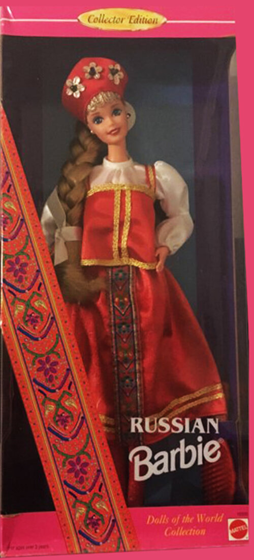 Многие коллекционеры кукол Барби от Mattel знают, что в те годы выпускались целые тематические коллекции прекрасных кукол в определенных тематиках. Этот пост продолжает обзор этой прекрасной коллекции. Ниже будут ссылки на начало поста. Открывает нашу подборку представительница нашей страны. Тематический красный сарафан и кокошник с золотом. Данная модель представлена в молде SuperStar. Куколка представлена в молде Mackie. Чудесная яркая куколка. Одета в пончо из искусственной замши с бахромой и бело-голубым декором. Молд у данной куколки представлен - Diva. Уже более менее привычный для многих молд SuperStar. Голубоглазая блондинка одета в национальный костюм с вышитым жилетом и красивой юбкой в цветочный принт, на которой повязан кружевной фартук. В волосах цветы и ленты и красные украшения (может быть, под гранат?) Молд у данной брюнетки - Oriental. Роскошный золотой тематический наряд с золотыми украшениями на запястьях, голове и колье на шее. Молд представлен у данной