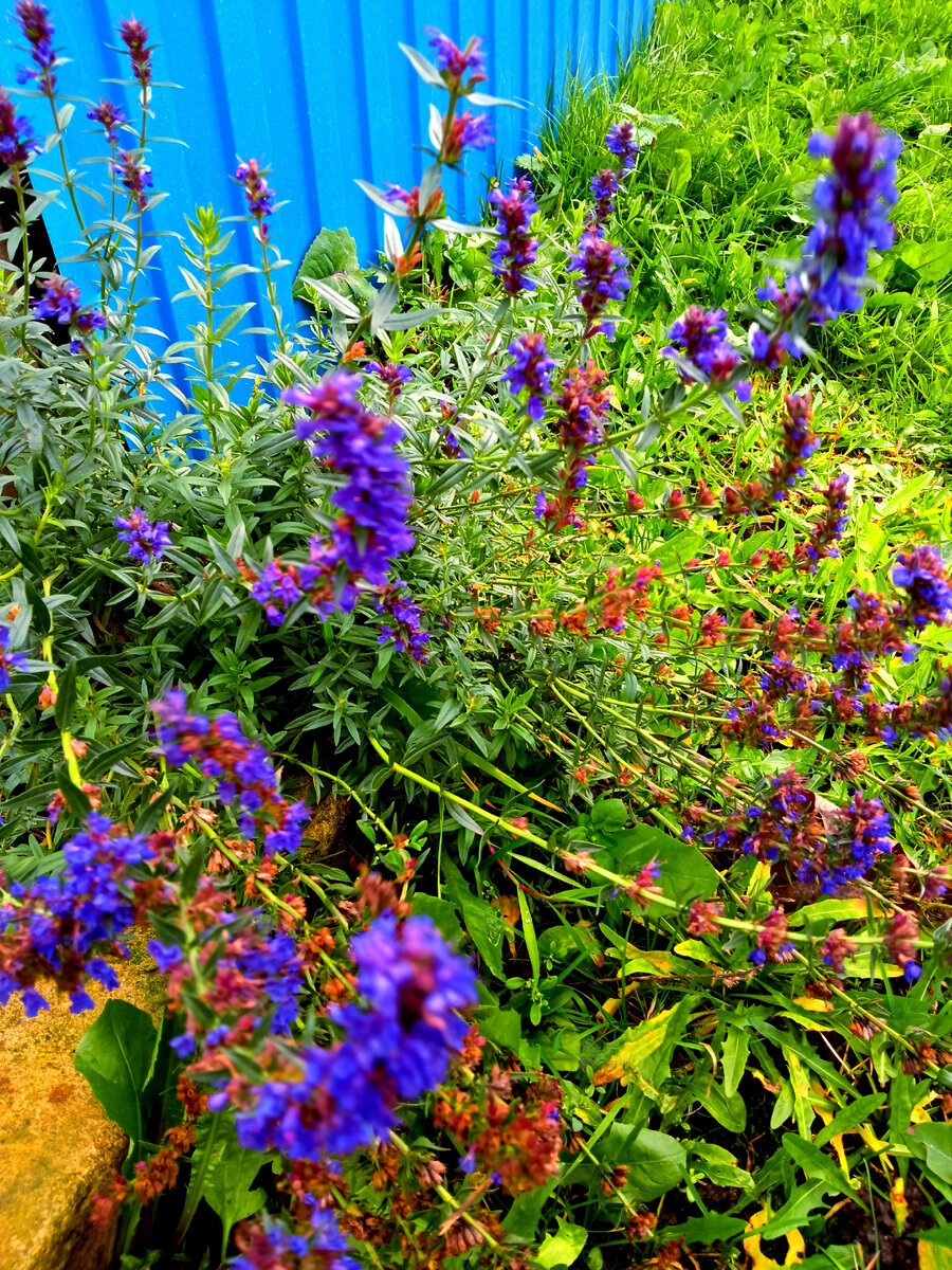 Не знаю, кто его посадил, но выросло это растение из-под моего забора с обратной стороны. Там у нас проезд и клумба соседки. Соседка-бабушка умерла, а ее дети не в курсе, что там было посажено. Но рос цветок не на клумбе, и тянулся откуда-то из под моего опорного столба. Долго я на него посматривала. Цвел он синими цветочками все лето, а сейчас, когда все увяло и усохло, стал прямо в глаза бросаться. Синий кустик в конце октября притягивал мой взгляд каждый раз, когда я шла в ту сторону. И надумала я этот цветочек переселить к себе - понравился. А много ли есть цветов, не скисших в такое время года, да еще и синего цвета? Задумано - сделано. Правда откопать цветок оказалось не так легко- его корни уходили под столб. После добычи растения из-под столба, я решила его подрезать, примерно вдвое, для лучшего укоренения. Ну что сказать, спустя несколько дней растение выглядит вполне нормально. Не завяло, не засохло, бодрое и зеленое. И источает какой-то довольно приятный запах, от цветов и