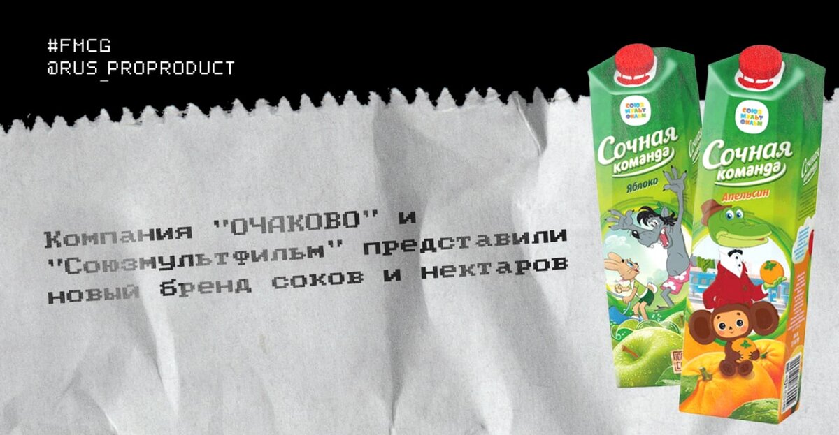 Компания «ОЧАКОВО» совместно с «Союзмультфильмом» выпустила новый бренд соков и нектаров «Сочная команда» с изображениями героев любимых мультфильмов в год 85-летнего юбилея киностудии. Упаковку новинки украшают герои из любимых классических лент: «Ну, погоди!», «Малыш и Карлсон», «Вовка в Тридевятом царстве», «Чебурашка», «Чиполлино». В основу новой линейки легли самые популярные у россиян вкусы: яблоко, вишня, апельсин, мультифрукт и томат. Линейку соков и нектаров «Сочная команда» уже можно найти на полках фирменных магазинов «ОЧАКОВО — натуральные напитки» и других торговых точках Московского региона, а также на маркетплейсах. Ещё больше интересных новостей в телеграм-канале https://t.me/rus_proproduct. Подписывайтесь!
