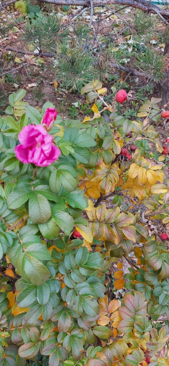 Поздняя осень в холодный денёк Мне подарила улыбку — цветок. Всё как обычно, но всё же не так. Улица с садом. Лес, потом парк. Голые ветки туманил дымок. С ветром кружился упавший листок. Сжавшись, гуляли прохожие редко. Грозди рябины краснели на ветке. Их свиристели, нахохлившись, ели. Смелые зяблики рядышком пели. Пруд индевелый дрожью рябил, Да и шиповник колючками злил, Больно цепляя меня за пальто. — Ну и кустище, — ругала его. Чуть наклонилась я над кустом. Вижу там ветку с зелёным листком, А под листочком горел огоньком Алый цветочек и рядом — бутон! Сказать, что красиво? Ничто не сказать. Жаль, аромат — не передать. Фото смотрите и восхищайтесь. В осень гуляйте и улыбайтесь.