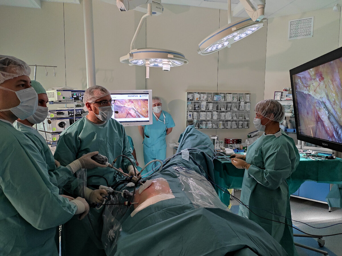 В ходе конференции, которая прошла на площадке ММЦ «СОГАЗ» в Геленджике, врачи выполнили две показательные лапароскопические операции: гемиколэктомию (удаление части ободочной кишки) и переднюю резекцию прямой кишки для устранения злокачественных новообразований. Оба вмешательства были проведены в рамках выделенных квот ОМС, то есть бесплатно для пациентов. Особое внимание хирурги обратили на формирование анастомозов — так называется соединение двух участков кишки после удаления фрагмента этого органа. Именно от качества наложения анастомозов зависит послеоперационное течение и успешное восстановление пациента, поэтому эксперты конференции продемонстрировали коллегам разные техники проведения этого этапа хирургии и поделились своим опытом.