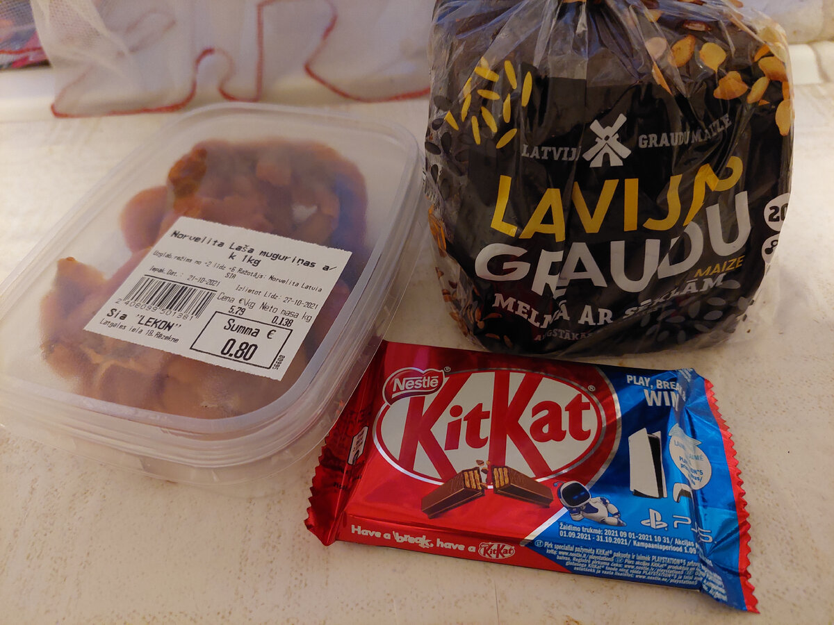 На этой неделе сама себе удивилась, поскольку в пятницу по традиции не поехала в магазин за салатом и чем-то сладким к кофе. Зато была в магазине в четверг (отвозила маму в большой магазин - вот и зашла), но общая сумма чека на покупку составила 1,98 евро. По большому счету мне нужен был хлеб, но моя коллега на работе показала мне такие аппетитные фотографии своего обеда (лаваш с лососем холодного копчения и сыром типа фета), что захотелось побаловать себя рыбкой. В сети магазинов Citro продаются копченые спинки лосося и по вполне приемлемой цене - 5,79 евро/килограмм. Вот я решила себя побаловать - купила этих самых спинок на 0,80 евро. На несколько дней на бутерброды хватит. В последний момент около кассы взяла шоколадку KitKat по скидке. Еще не всю съела. :-) В среду обедала в кафе -5,78 евро. У нас страну вновь закрыли на локдаун, причем жесткий и кафе работать не будут, как, впрочем, и промтоварные магазины. Пришлось резво покупать зимние ботинки сыну и кое-что для деревни (торф