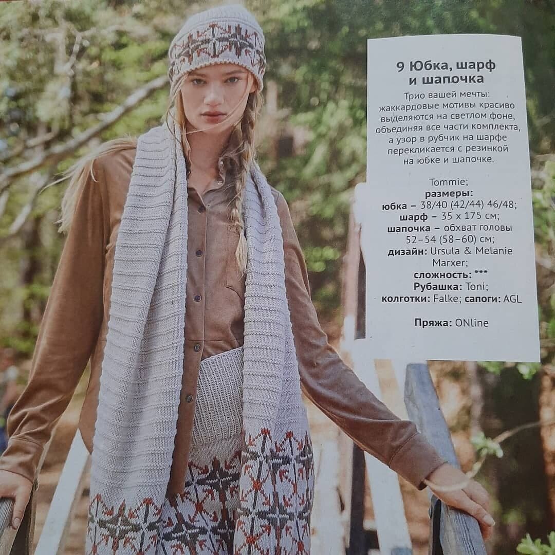 Сегодня поделюсь почти первым опытом жаккарда. Всегда побаивалась. В жаккарде меня смущает обратная сторона с протяжками. Гляжу на модели шарфов, шалей с жаккардом и не понимаю, как носить, ведь обратная сторона будет на виду. В плечевых изделиях не видно, но в аксессуарах? Выход – двухсторонний жаккард. Но это так трудоемко, объемно. Оправданы ли такие труды? Почти первый опыт, потому что, это второй. Первый раз вязала чудный сарафанчик для трехлетней дочки. Дочка его одела раза три, потом сарафан оказался в стиральной машине с бельем, требующим усиленного режима. Сарафан из машинки отправился в мусорный пакет. Теперь вот решила повторить подвиг с жаккардом. Остановилась на шапочке. Будет теплая двухсторонняя. Модель из журнала Verena №3 2021. Фото узора ниже. Модель очаровала сразу. Не мудрствуя лукаво, цвета подобрала согласно картинке. Оранжевый был (предыдущая шапочка и снуд). Небеленый белый это 100% козий пух от Троицкой пряжи, серия: «Зимняя сказка», 50гр/300 метров. На эту п