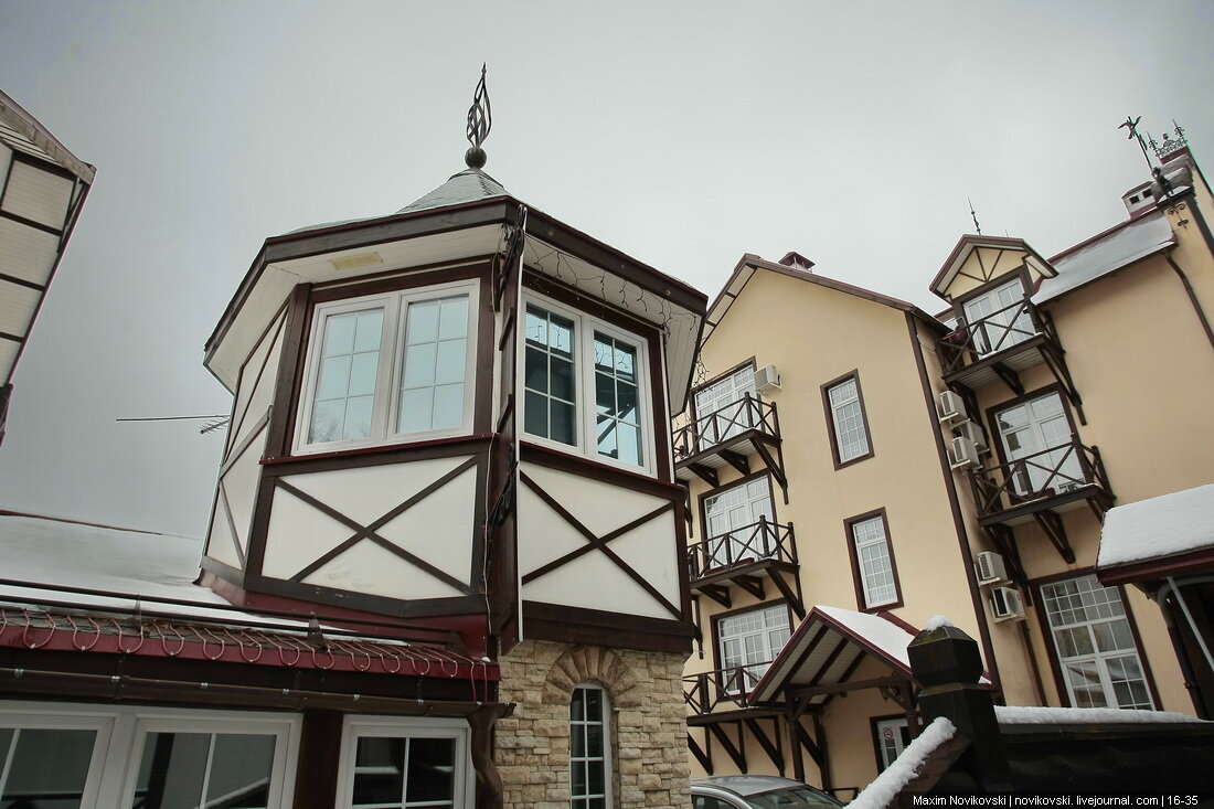По-началу я подумал, что оказался где-то в глухой Швейцарии, в Альпах, на заснеженных косогорах, если бы не русские березки повсюду и яркое название на русском - "трактир"...