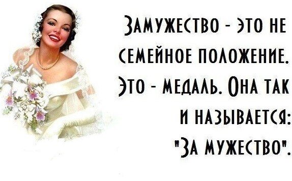 Доброго времени суток. Как вы уже поняли, сегодня речь пойдет о замужестве. Объясню, откуда такое название статьи. Где-то с полгода назад мне стало мало обручальное кольцо. Я его сняла и последние шесть месяцев ходила без кольца, которое не снимаю уже почти 28 лет. Я понимала, что кольцо надо «раскатать», но летом было совсем не до этого. Собралась я к ювелиру только осенью, после увольнения, и вот: триста рублей и пять минут вернули на мой палец вновь заблестевший символ замужества. Ощущение, скажу вам, приятное, так как к своему семейному положению я отношусь с уважением, если можно так выразиться. Конечно, за эти годы много чего было, и теперь я отношусь к замужеству философски и с юмором (без этого семейную жизнь не вытянуть), но о самом статусе никогда не жалела. Нам ведь с пеленок внушали, что девушка должна обязательно выйти замуж, быть одинокой всегда в той или иной мере порицалось обществом. Все девочки(поверьте, без исключения) мечтают о белом платье, букете невесты, кольца