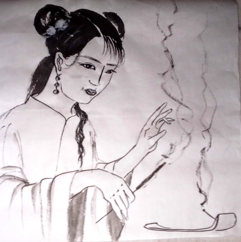Ароматическую палочку сначала зажигают, а потом пламя гасят, и она тлеет, источая нежный аромат. В средневековом Китае "...между лекарствами, специями, благовониями и благовониями не было четких различий - то есть между веществами, питающими тело, и теми, которые питают дух, теми, которые привлекают любовника, и теми, которые привлекают божественность." © Эдвард Х. Шафер