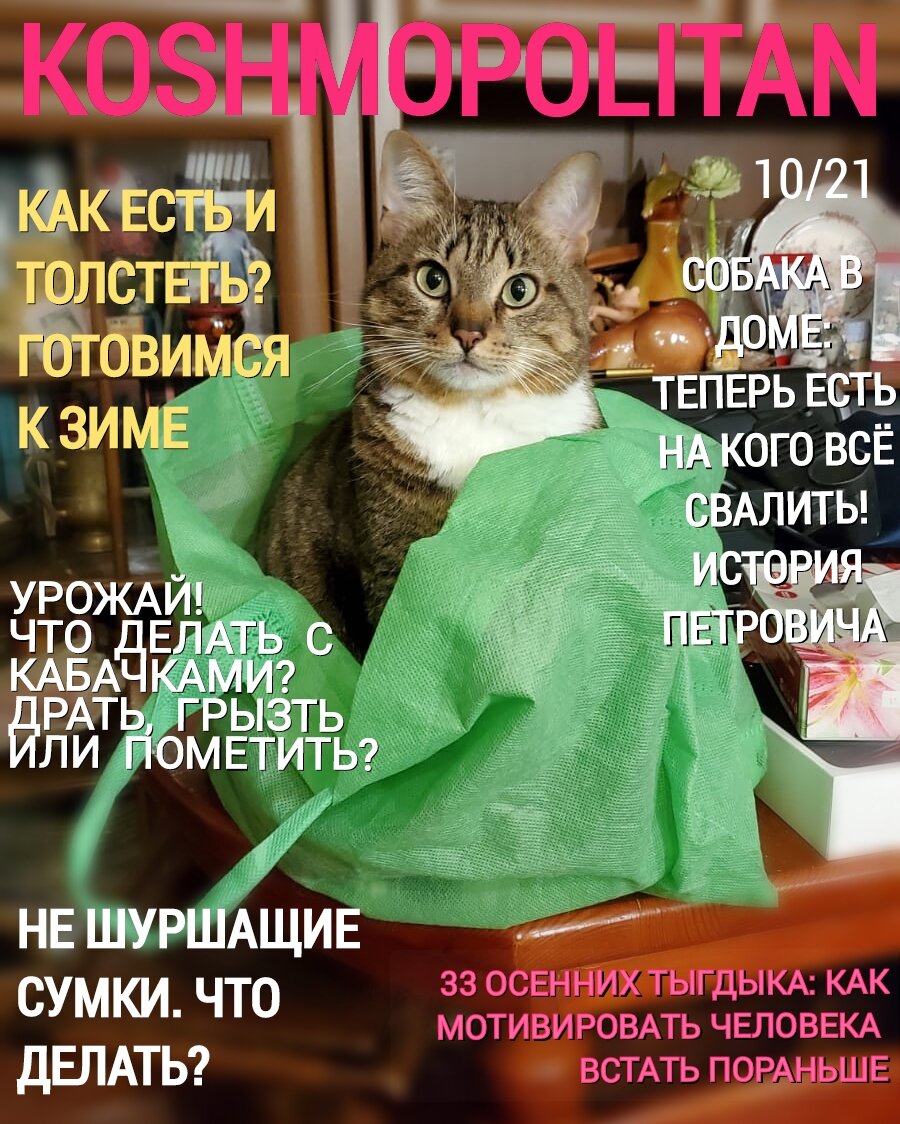 Думаю, многие видели или делали подобные обложки для кошачьих журналов. А если бы в таком журнале действительно были статьи? Решила немного пофантазировать на эту тему.