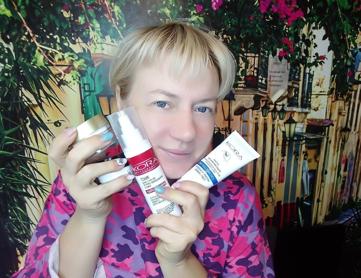 И если вы еще размышляете – из чего выбирать крема и прочие средства по уходу за кожей – прочтите сначала мою статью. Ни одна другая марка пока не составила с ней конкуренции. И о косметике марки «Кора» я могу говорить долго и с упоением – потому что результаты она показывает лучшие. И это при цене, которая доступна абсолютному большинству женщин! Я перепробовала очень много разных средств «Кора» Сегодня в моем уходе надолго поселился тоник для сухой и чувствительной кожи – ультраувлажнение. Почему именно он – отвечаю: во-первых, подходит для моей кожи, а во-вторых - тоник можно распылять на лицо! Это очень удобно – не надо тратить для применения ватный спонж, просто распыляю средство на лицо. Такой способ нанесения к тому же экономичен! Тоник вы можете увидеть на фото верху у меня в руках. Сегодня особо хочу отметить несколько масок, которыми я пользовалась. И еще хочу поделиться - почему я от всей души рекомендую моим читательницам приобрести что-либо из этой серии. Начну с маски, ко