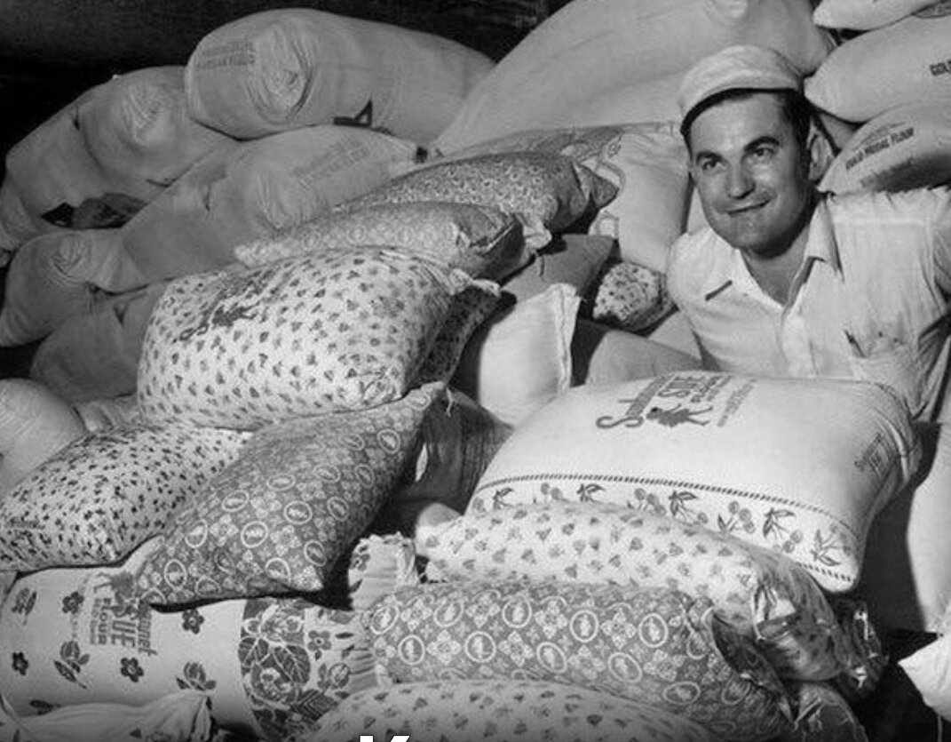Когда производители муки поняли что бедняки шьют одежду для своих детей из мешковины, Они тут же повысили качество упаковки стали делать её разноцветной. Это США 30-е годы Великая депрессия. Доброта и только. Это самый настоящий факт.