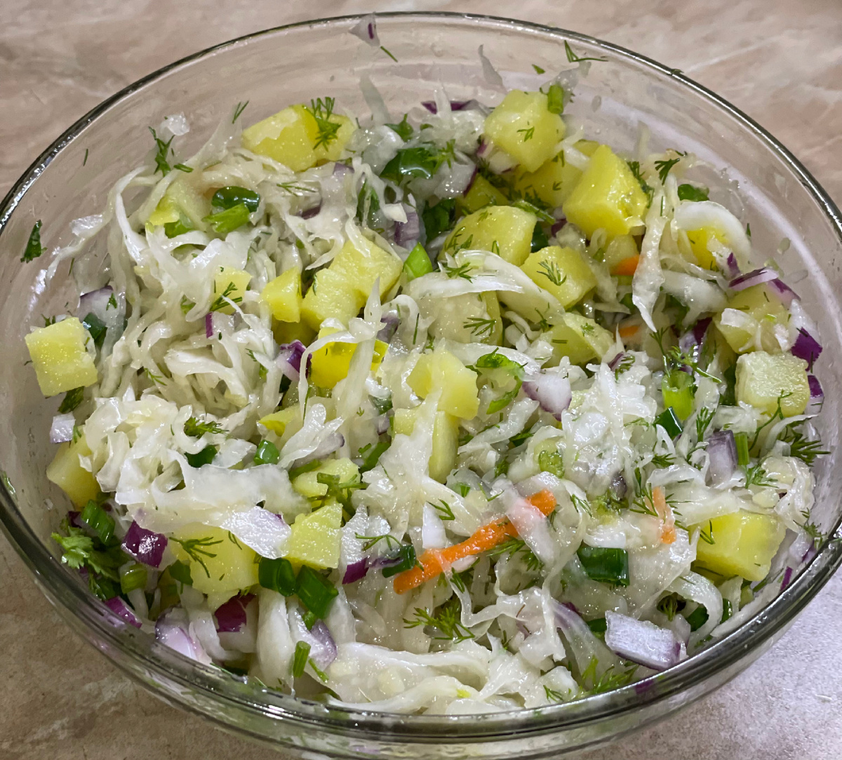 Добрый день! Хочу поделиться с вами самым быстрым и не менее вкусным салатом. Ингредиенты: Картофель отварной 🥔 2 шт. Квашенная капуста 100 гр. Лук красный 1 шт. Масло растительное По вкусу Зелень По вкусу Приготовление Отварной картофель, лук очищаем от кожуры нарезаем кубиками, смешиваем с капустой и зеленю, заправляем маслом. Приятного аппетита 😋 #ленивый салат #салат с картофелем #салатскапустойквашеной #салат на скорую руку #вкусный салат #сплат за 5 минут
