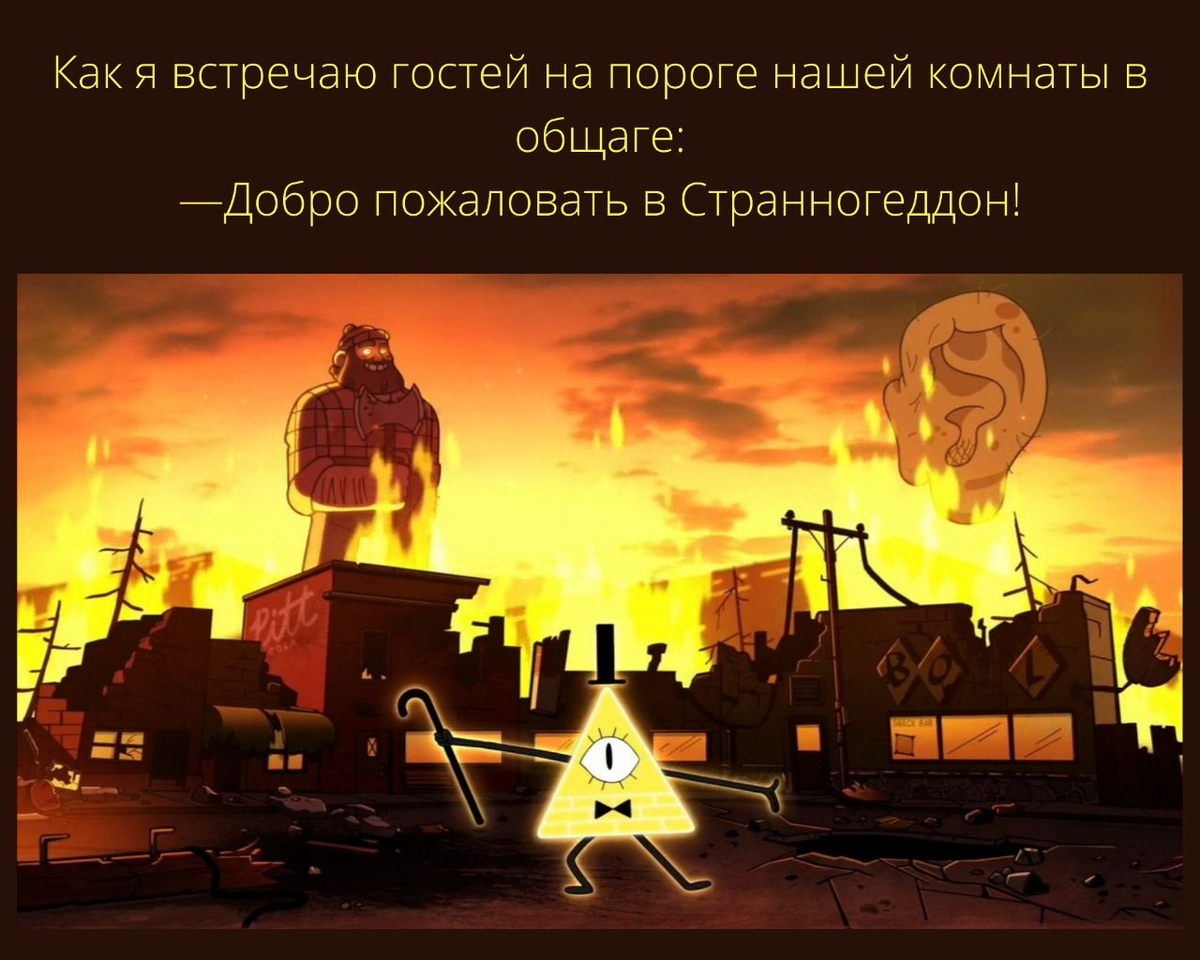 Всем привет народ, с вами Гидеон! Множество довольно однообразных статей с мемами на моём канале уже успели надоесть некоторым подписчикам, поэтому я решил немного разнообразить эту рубрику. За все мемы в этой подборке я хочу сказать огромное спасибо автору паблика Гравити Фолз как смысл жизни. Ну а мы начинаем, так что захватите печеньки и чаёк и приятного прочтения! 2. 3. 4. 5. 6. 7. 8. 9. 10. На этом всё Если вам понравилось - поддержите статью лайком и подпиской на канал, а также не забудьте подписаться на паблик автора мемов. Можете посмотреть предыдущие выпуски мемов, уже моего авторства, или же другие мои статьи, всё ниже. Спасибо за прочтение и удачи! ----------------------- Предыдущий выпуск мемов: Мемы Гравити Фолз №4 Следующий выпуск мемов: (пока нет) Также вам может быть интересно: