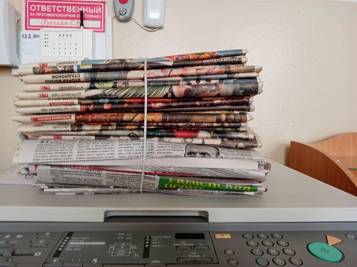 В Ишимском районе бумажный бум - сбор макулатуры. Как в советское время: кто кого опередит. Где-то народ тоннами собирают эту макулатуру, где берут - непонятно. Школы, ДК, библиотеки борются за место под солнцем для своего учреждения. Вопрос - где взять требуемое количество бумаги? Это все, что мы насобирали! Половину этой стопочки принесла я. Моей маме, как председателю Гагаринского совета ветеранов приходит газеты "Ветеран" и Ишимская правда". Вот за год и насобирали) Дали объявление в соцсетях в группах "Гагаринский Дом культуры", личные сообщения раскидывала, чтобы принесли что-нибудь. Тишина! А с другой стороны, если подумать, у людей действительно нет этой бумаги. Газет они не выписывают, книги не покупают и не читают, коробки картонный выбрасывают, либо сжигают. А что же можно сдать? А что не макулатура: