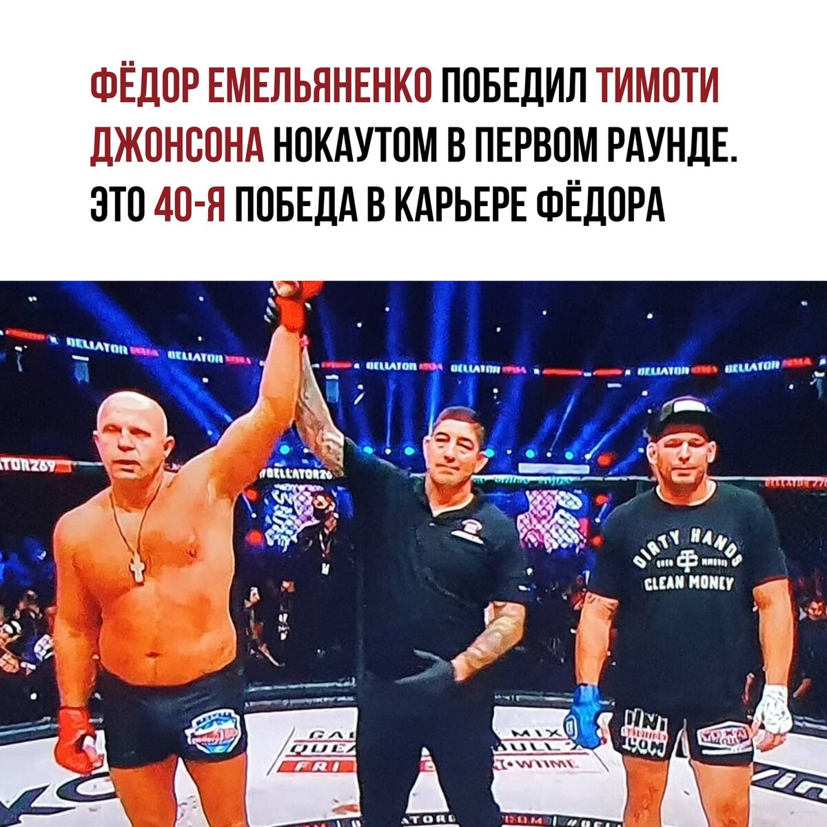 Люди радуются полученному шоу, но по лицу Федора видно, что он делал тупо ради денег. Скорей всего он даже знал каким будет финал, потому как за любыми боями и шоу стоит промоутер - организатор.