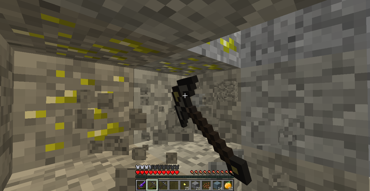 Так, я скрафтил кирку из занита, теперь можно и эту руду добыть! Но... Тут проблема, оно всё равно медленно ломалось, поэтому я не стал ломать, а решил добыть для начала гравитит.