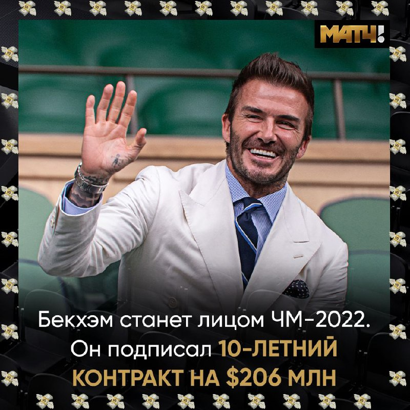 По данным британских СМИ, Дэвид и катарская сторона договорились о 10-летнем контракте, по которому Бекс будет получать по $20,6 млн в год Официально о сотрудничестве с послом турнира объявят в следующем месяце. Бывший капитан сборной Англии уже прилетал в Катар на неделю, встречался с организаторами и смотрел стадионы.