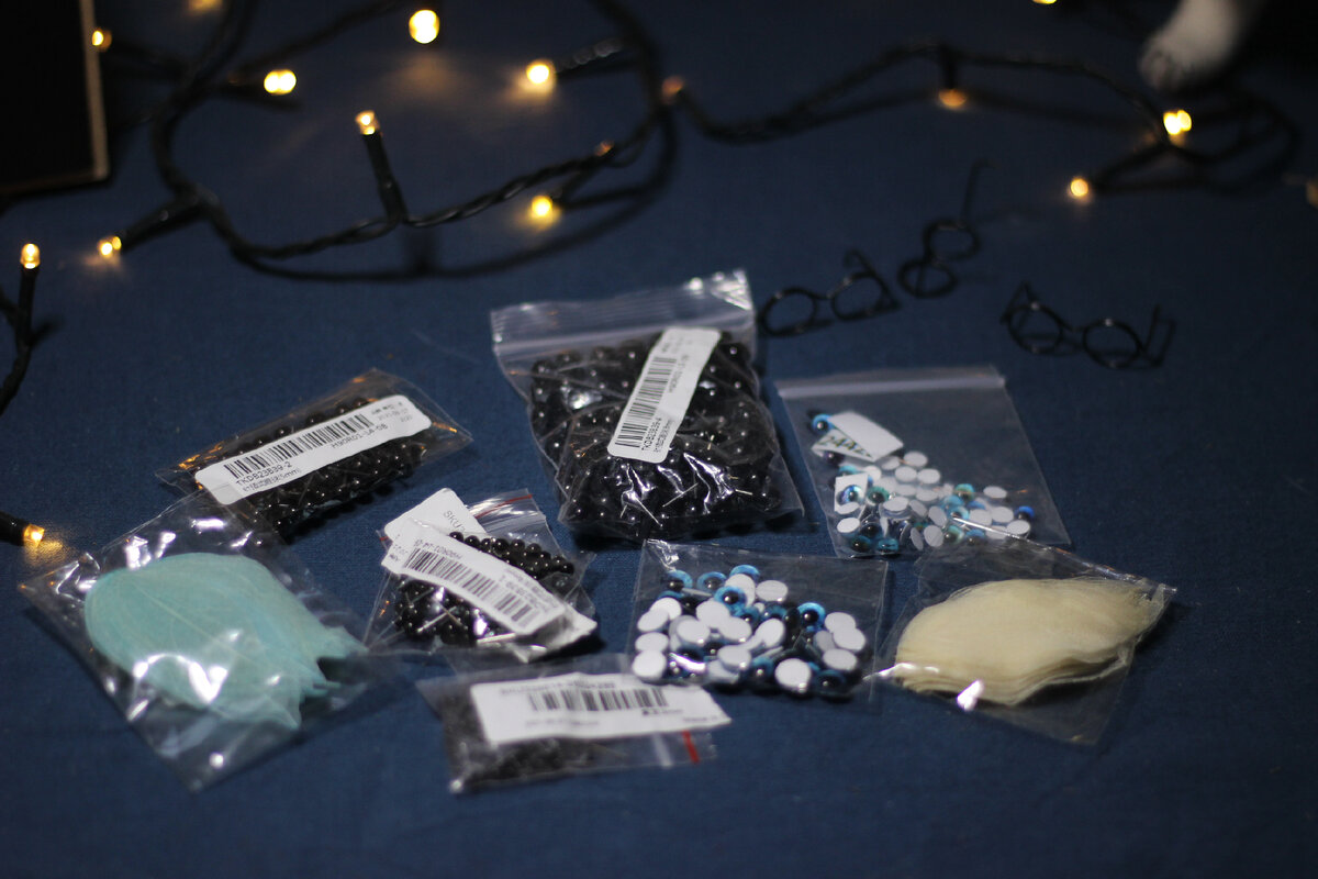 Самым косячным (простите за сленг) оказался набор с глазками 2мм: бусинки разного диаметра, хотя можно найти пару, и штырьки разной длины, но не думаю, что в этом есть большая проблема.